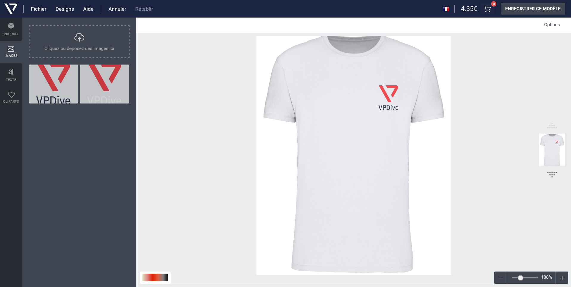 Rendez-vous sur votre espace VPDive et cliquez sur l’icône de la roue crantée, puis sur Print > Produit. Avant de commencer, vous pouvez consulter le catalogue des vêtements disponibles. Même si toutes les références ne sont pas encore en ligne, elles seront ajoutées progressivement selon vos demandes.